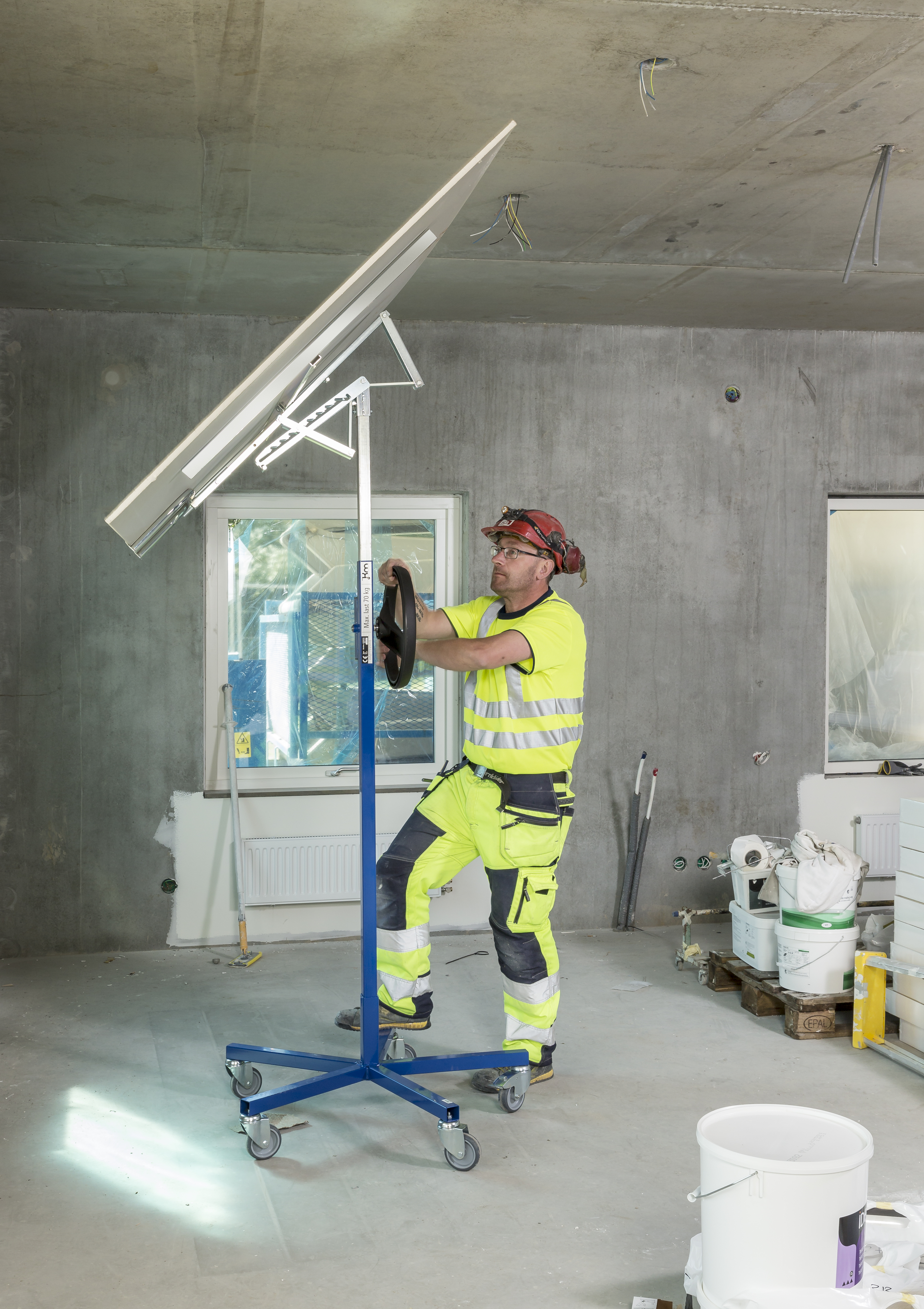 Revêtement poudre époxy et galvanisé Ajustable en hauteur de 1790 - 3000 mm Support inclinable Hauteur de travail toujours parfaite Ergonomique 5 roues pivotantes 100 mm, 1 avec frein Capacité 70 kg
