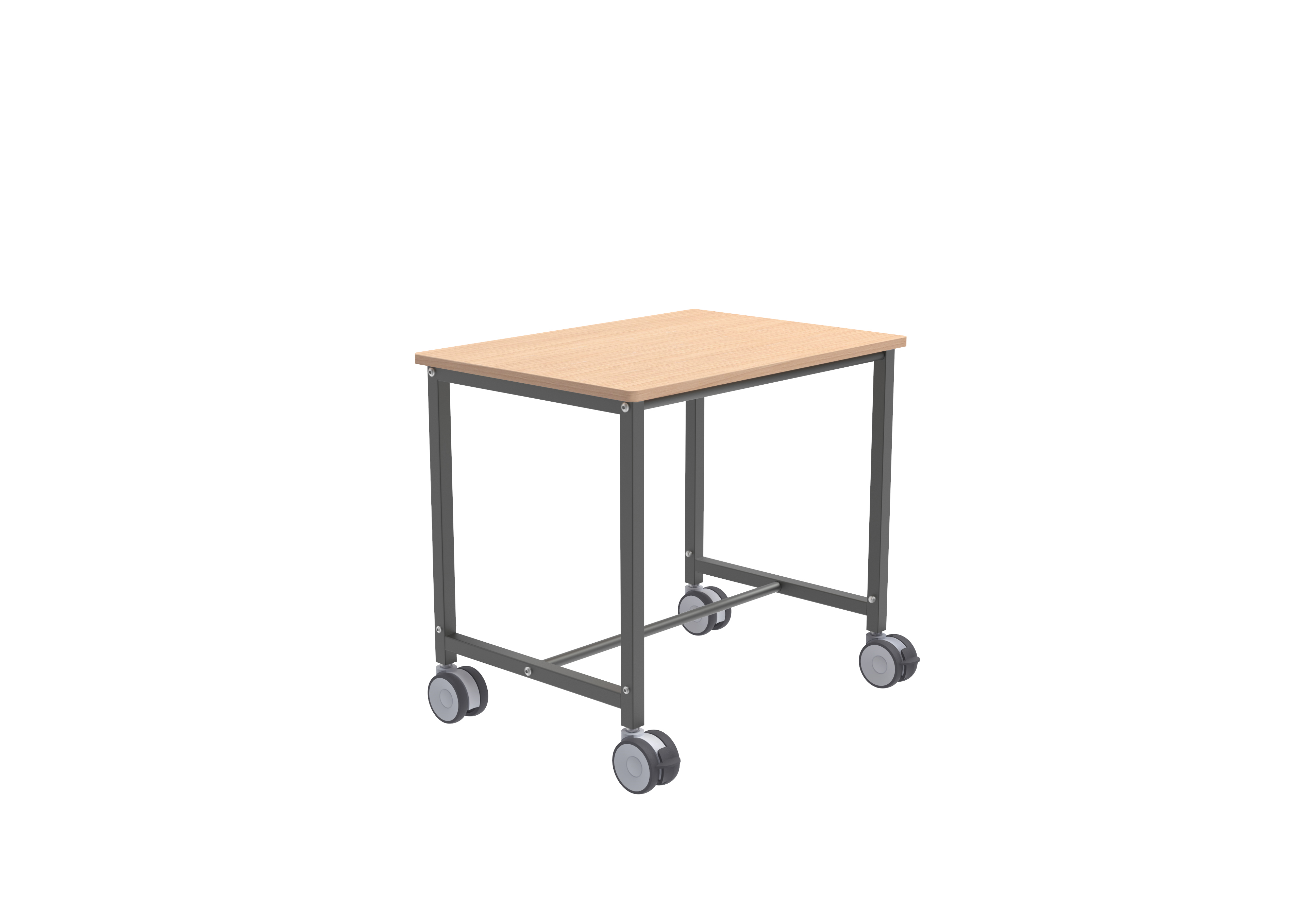 Ajustable en hauteur, 720-1100 par pas de 50 mm. Roues: 4 roulettes pivotantes dont 2 avec freins. Diamètre des roulettes: 100 mm.